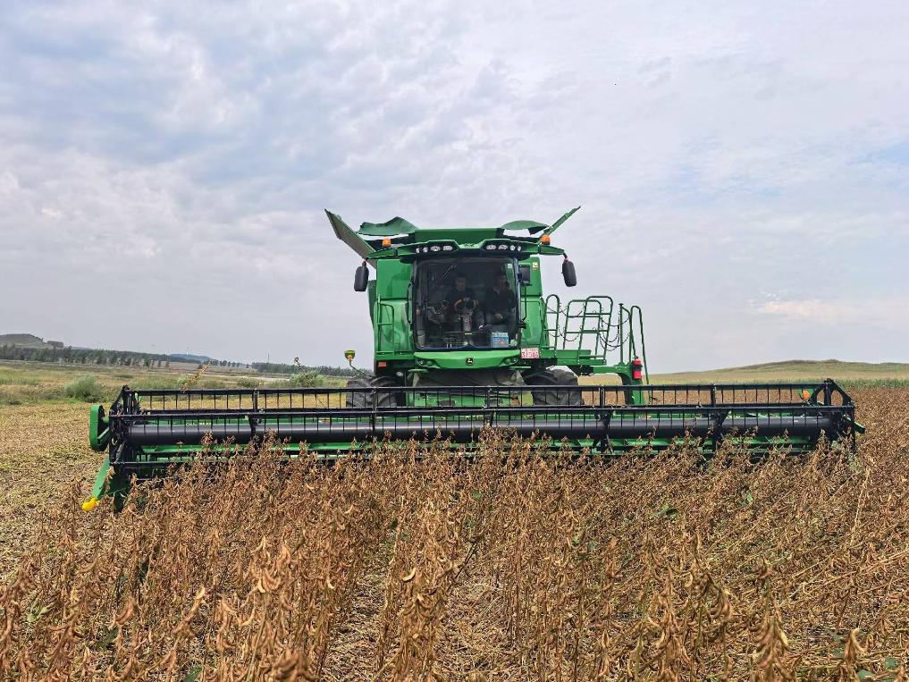 黑龙江省七台河市勃利县恒山玉米专业合作社大豆收获现场。(受访者供图)