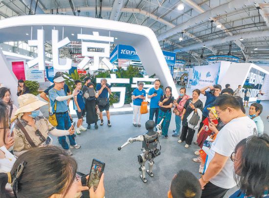 上周末,2025年中国国际服务贸易交易会公众日,在北京一轻展区,绿色制造、人工智能、新材料研发及民生服务领域的首都国企创新成果,吸引观众驻足参观。 记者 武亦彬摄