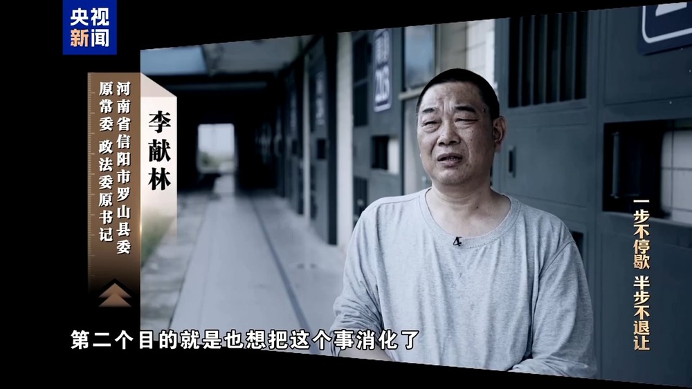 河南省信阳市罗山县委原常委、政法委原书记 李献林:自己的底线没守住,带来一圈的事,害了一圈的人。所以这也是我这段时间一直在忏悔的原因。