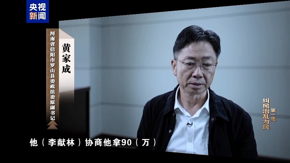 河南省信阳市罗山县委政法委原副书记 黄家成:李献林协商他拿90万,段巍巍和汪海洋各拿80万,我拿20万,方建兵拿10万。