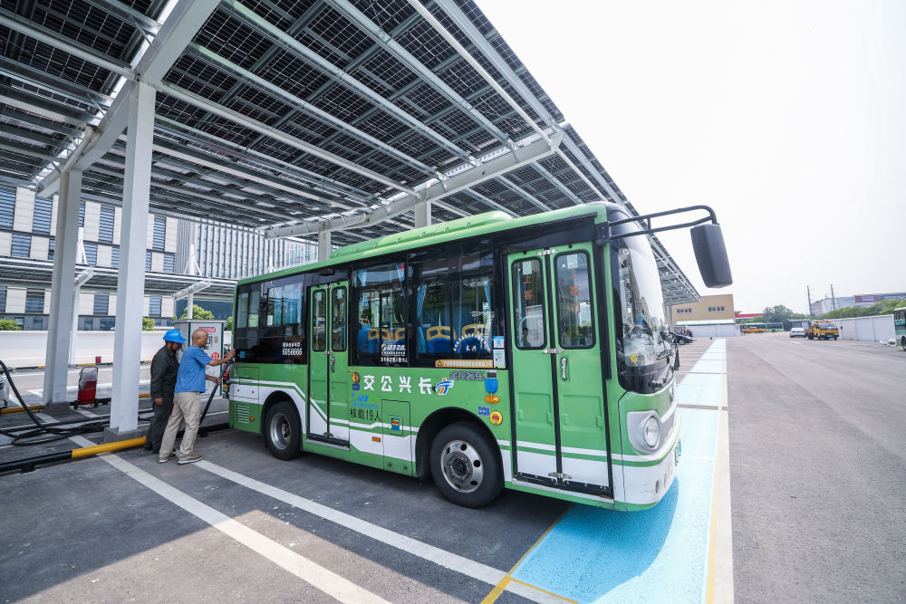 5月27日,浙江省湖州市长兴公交总站光储充一体化公交充电站正式并网投运。新华社记者 徐昱 摄