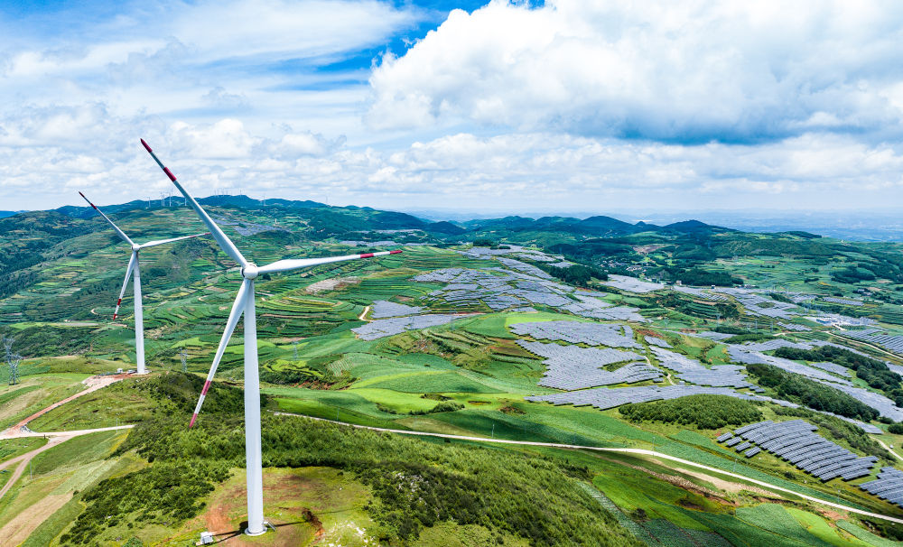 7月3日拍摄的贵州金元仙水窝农业光伏电站一隅(无人机照片)。新华社记者 陶亮 摄
