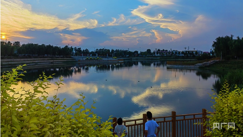 西峰区小北湖晚照(央广网发 刘新艳 摄)